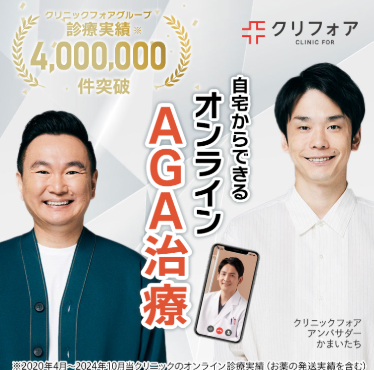 クリニックフォアは予防プラン【定期配送】を初月1ヶ月無料、2ヶ月目以降も月額3,412円~(税込)で続けられるオンラインAGAクリニックです。月の負担をなるべく抑えたい!という方におすすめです。※1※1 クーポンコード[TRY]を決済でご利用した場合。2ヶ月目以降は税込3,412円。クーポンコード[TRY]を決済でご利用した場合。2ヶ月目以降は税込3,412円。お薬を処方しない場合は、診察料1,650円(税込)が発生いたします。※2 詳細は公式サイトよりご覧ください。※3 診療時間は、土日祝日をはじめ日によって異なる場合がございます。※4 2025年2月時点 ※5 2020年4月〜2024年10月当クリニックの診療実績(お薬の処方実績を含む)。